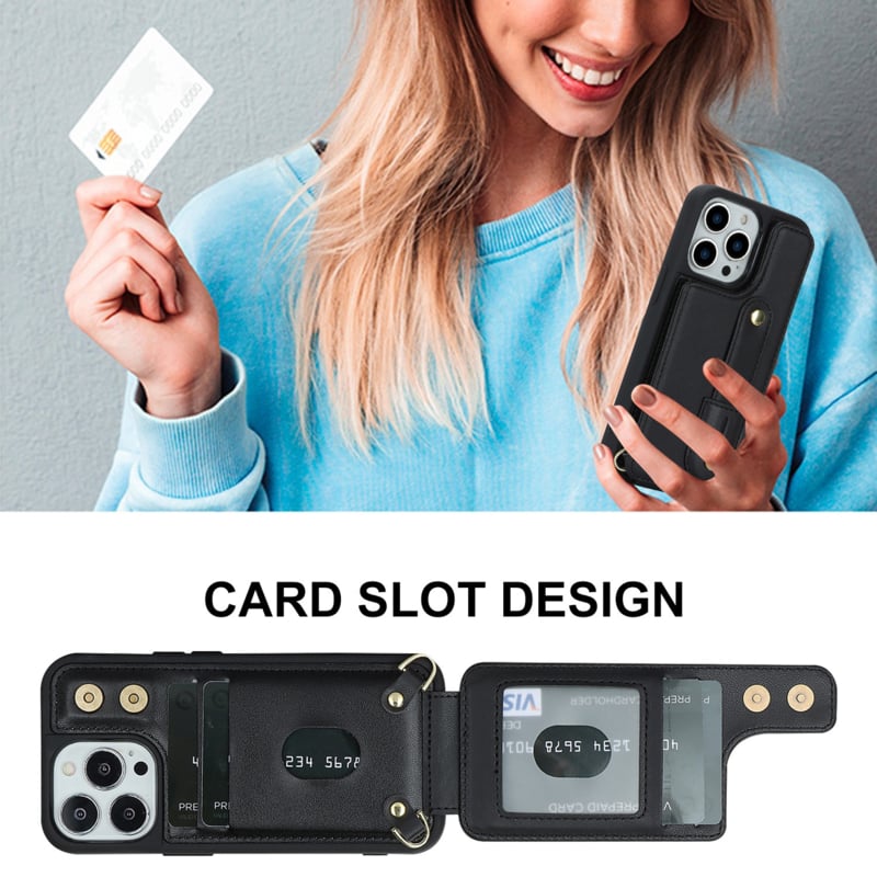 iPhone 16 Pro Max Hoesje met Pasjesvak, Polsband & Draagkoord